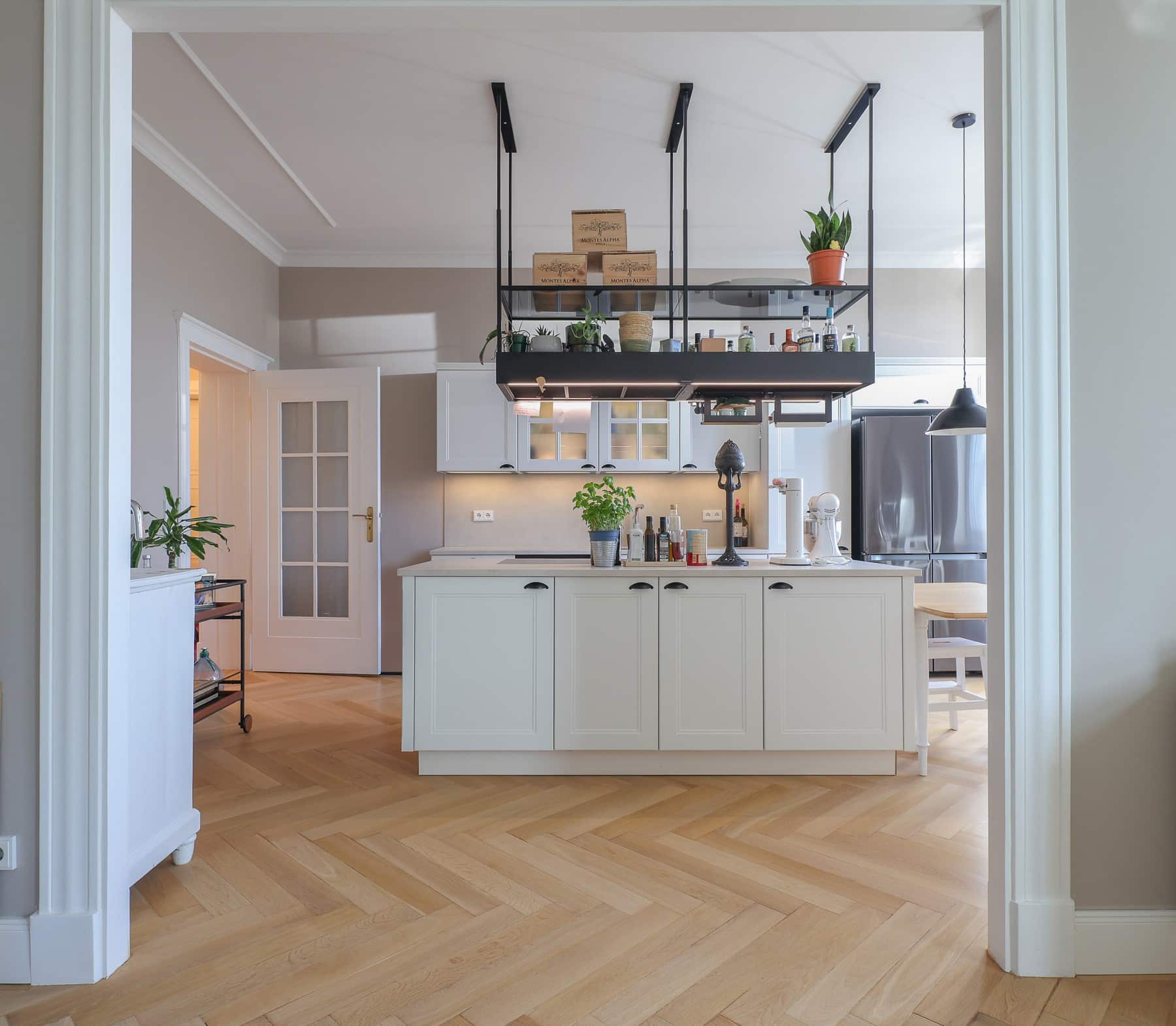 Exklusive, kernsanierte 3. OG-Wohnung (2022/2023) mit direktem Aufzugstopp: Rund 170 m², 5 Zimmer und ca. 3,20 m Deckenhöhe. Offener Wohn-/Essbereich, edle Böden und maßgefertigte Schränke setzen Akzente. Die schicke Küche mit Miele- und Siemens-Geräten, beigem Steinblock und extra Arbeits-/Gästezimmer lädt zum Genießen ein. Ein heller Flur trennt repräsentative und private Bereiche (Eltern-Schlafzimmer mit En-Suite, Kinderzimmer, weiteres Bad und Hauswirtschaftsraum). Elegante Bäder, moderne Technik, schallisolierte Fenster, 3 Klimaanlagen und smarte Türschlösser garantieren hohen Komfort. Aktuell Ölheizung – Fernwärme wird diskutiert. Ein Tiefgaragenstellplatz kann optional erworben werden. Das Mietshaus vereint historischen Charme mit modernem Luxus.