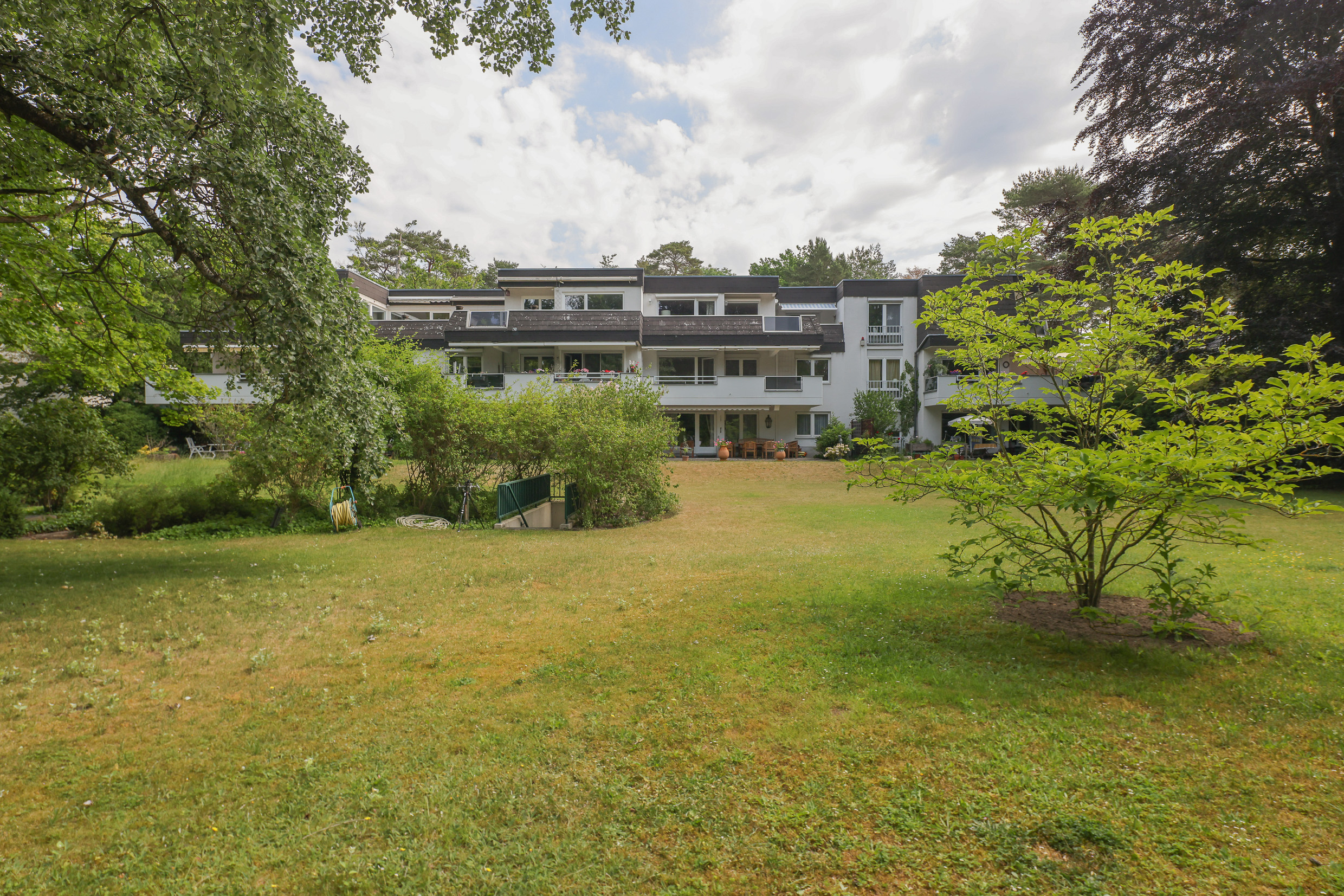Mitten in diesem großen Parkstreifen befindet sich das kleine Mehrfamilienhaus