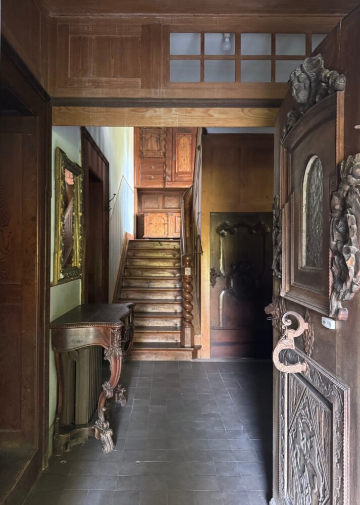 Die kunstvolle Schmiedearbeit bei der Hausklingel, den Tür- und Schrankbeschlägen sowie dem Treppengeländer, die mit Ornamenten geschnitzten Dachstützen, die Vertäfelungen im Studierzimmer und die originalen Parkettböden aus Eichen- und Kirschholz verleihen der Villa ihren historischen Charakter und das Flair längst vergangener Zeiten. Für behagliche Wärme sorgt der gut erhaltene Kachelofen im Erdgeschoss – ebenso stehen bestimmte Räume, wie das komplett vertäfelte Studierzimmer und der Bereich um den Kachelofen im Wohnzimmer, unter Denkmalschutz.