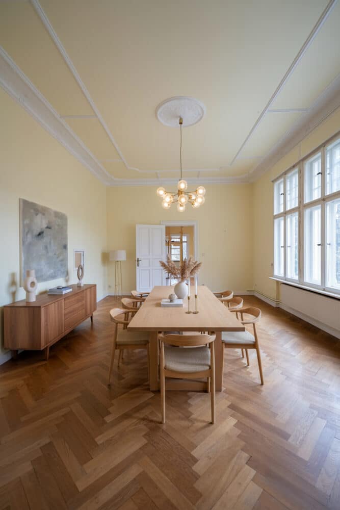 • edles Fischgrät- und Mosaikparkett in den repräsentativen Räumen
